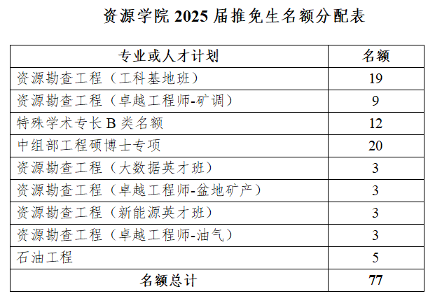 2025届本科毕业生推荐免试攻读研究生工作方案》,我院2025届推免生名额分配如下: