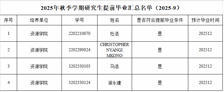 根据学校的相关通知要求,经研究生个人申请,学院初审,免费看a片 2023级硕士研究生(不含硕博连读、提前攻博研究生)、2022级博士研究生(不含直博生)、2020级直博生申请提前毕业名单如下,如有异议,请公示期内书面反馈意见至研究生科(联系人:周老师,办公室:主楼336,电话:67883627),公示期即日起至2025年9月22日。