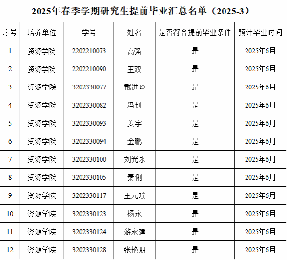 根据学校的相关通知要求,经研究生个人申请,学院初审,免费看a片 2023级硕士研究生(不含硕博连读、提前攻博研究生)、2022级博士研究生(不含直博生)、2020级直博生申请提前毕业名单如下,如有异议,请公示期内书面反馈意见至研究生科(联系人:周老师,办公室:主楼336,电话:67883627),公示期即日起至2025年3月2日。