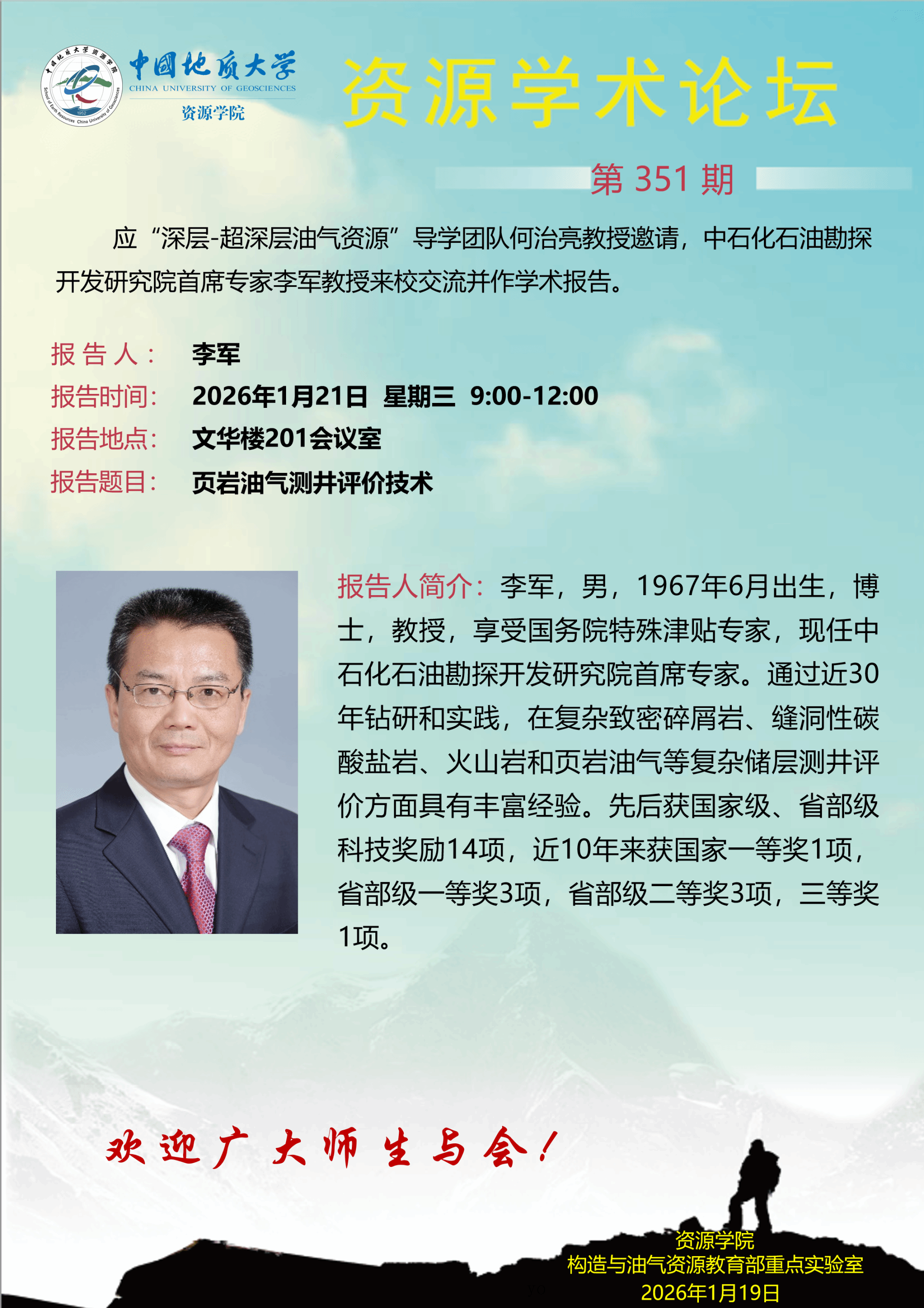 【1月21日】第351期资源学术论坛:李军学术报告