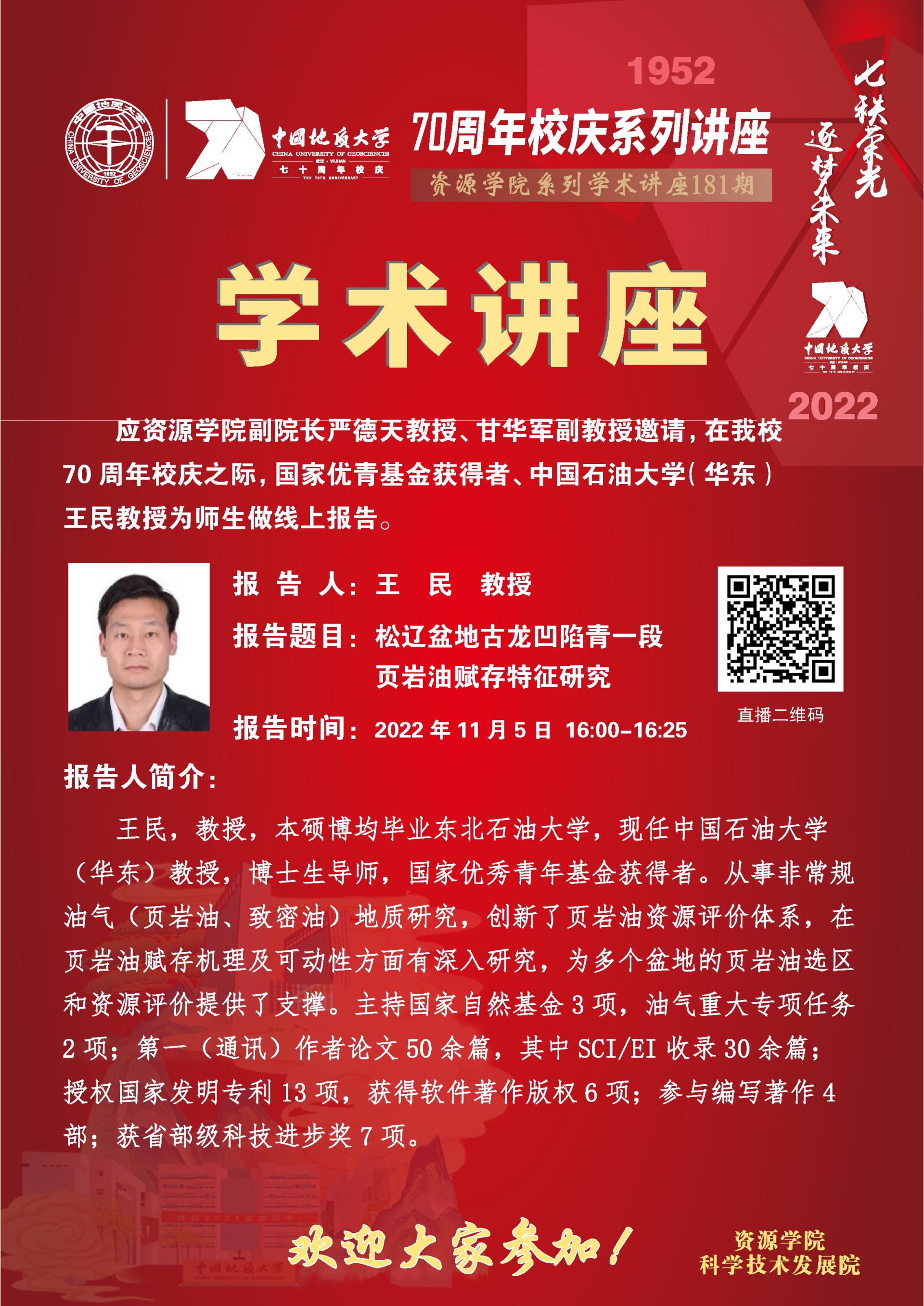 【11月5日】第181期资源学术论坛:王民学术报告