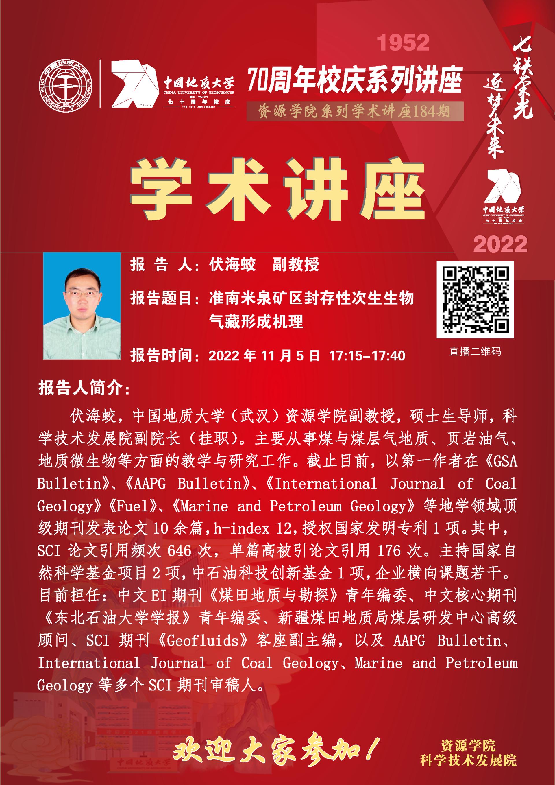 【11月5日】第184期资源学术论坛:伏海蛟学术报告