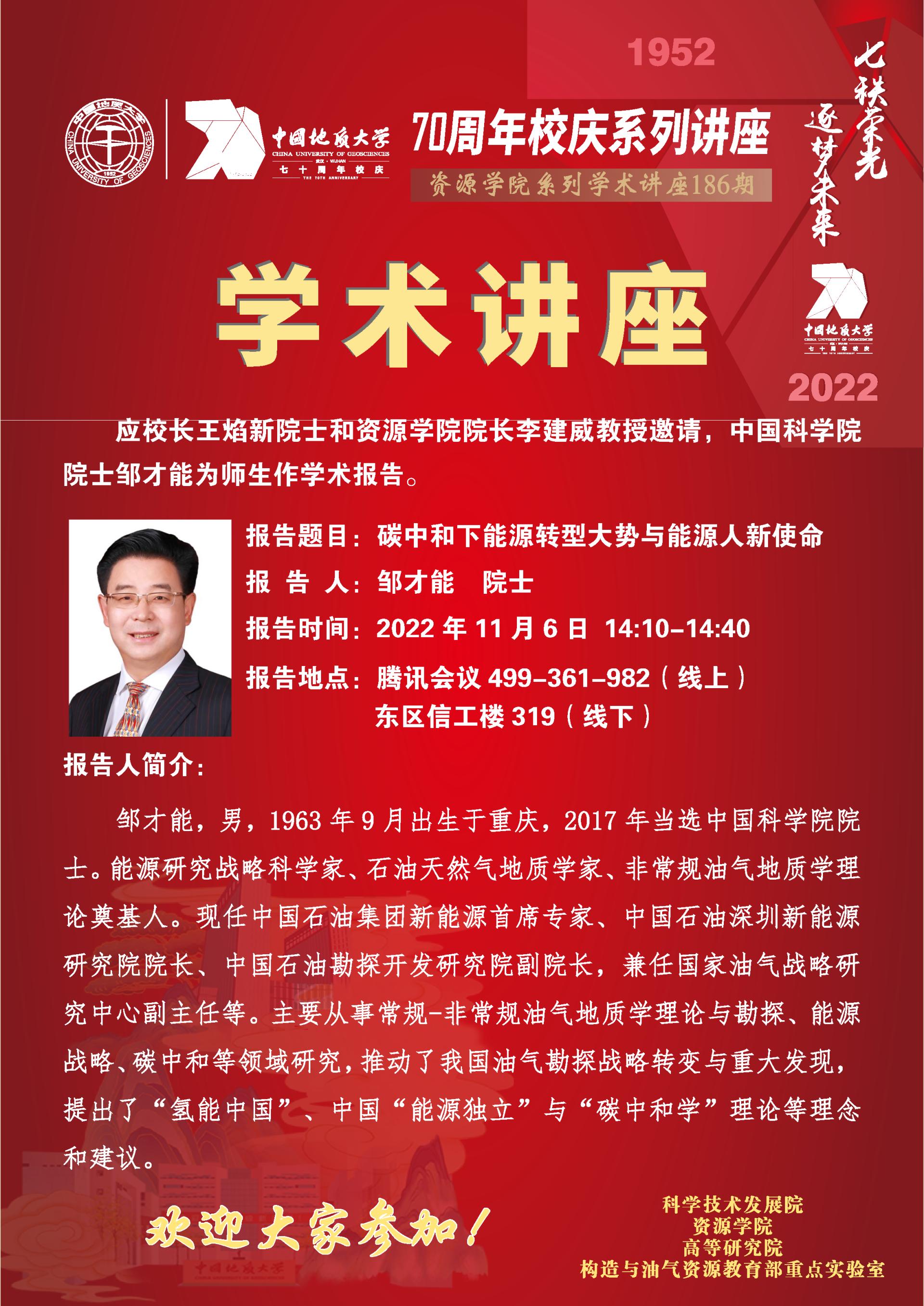 【11月6日】第186期资源学术论坛:邹才能学术报告