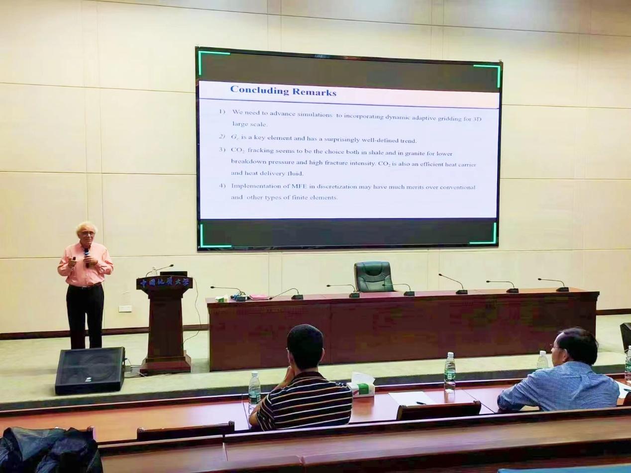 Abbas教授的报告分为三个专场:“高效地层能源生产过程中的液-液界面弹性、液-固界面能量密度CO2粘性和压裂性”、“流固热力学稳定性以及相场和地质力学各种概念”、“等温和非等温条件下的压裂”。