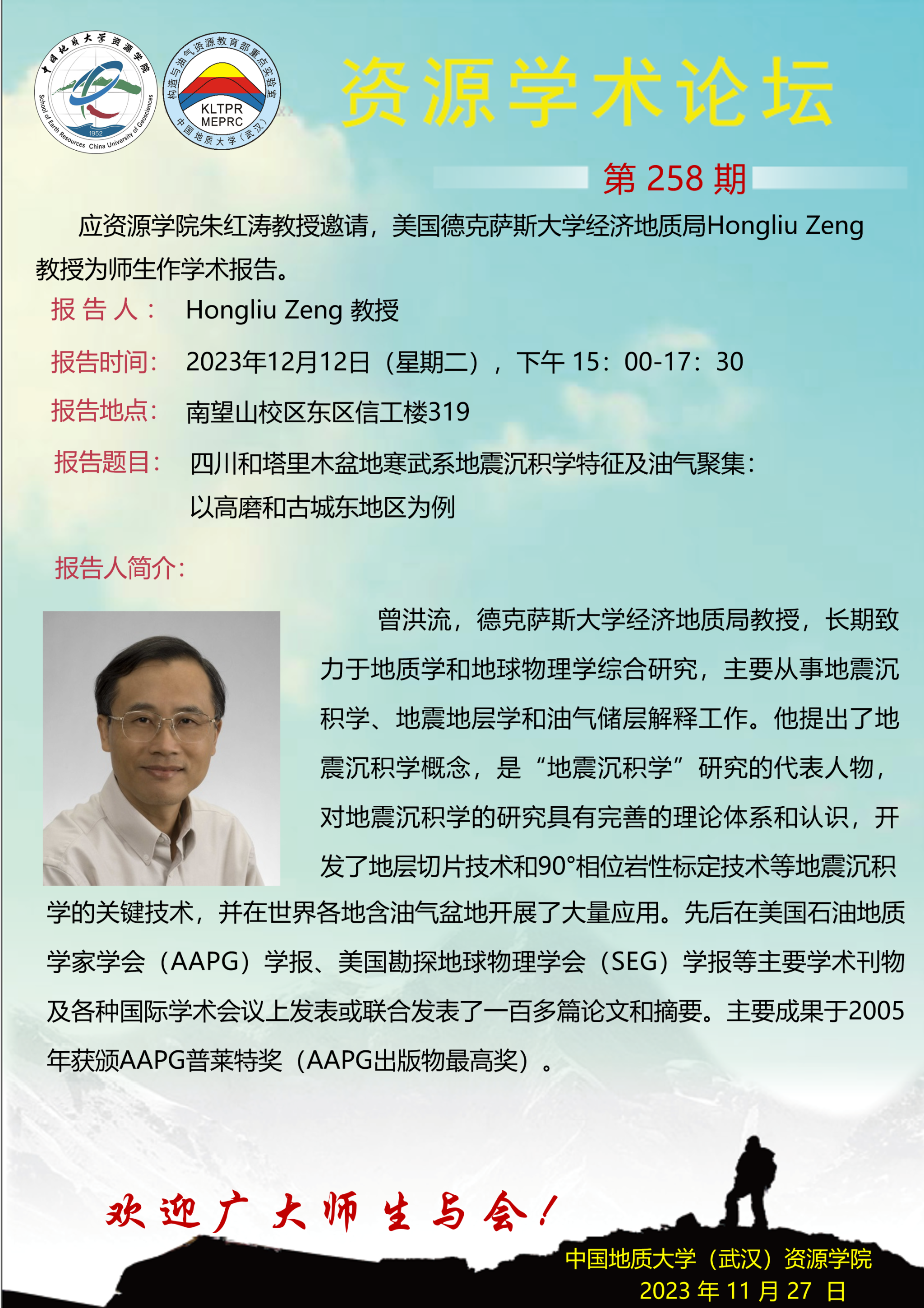 【12月12日】第258期资源学术论坛:Hongliu Zeng学术报告