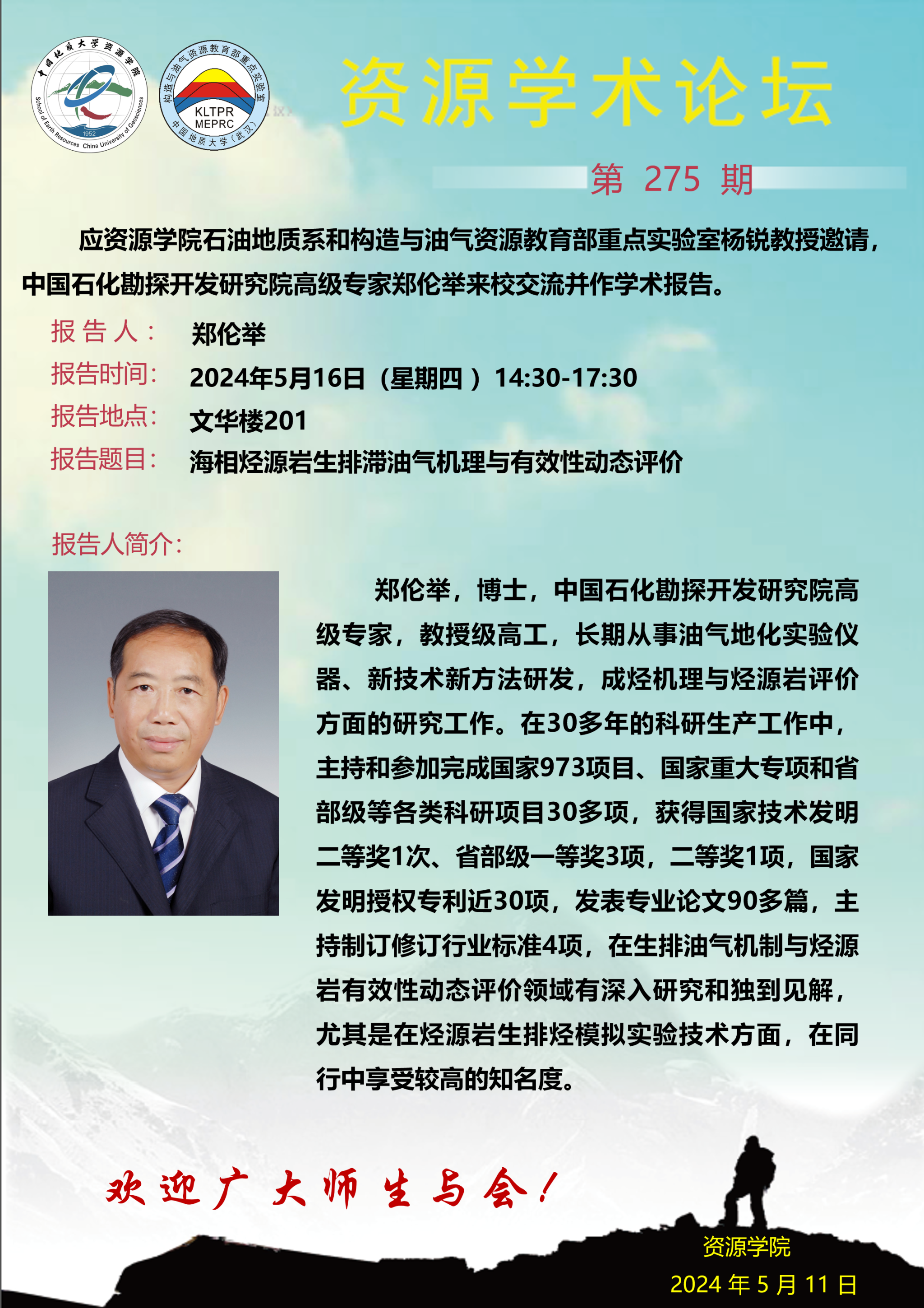 【5月16日】第275期资源学术论坛:郑伦举学术报告