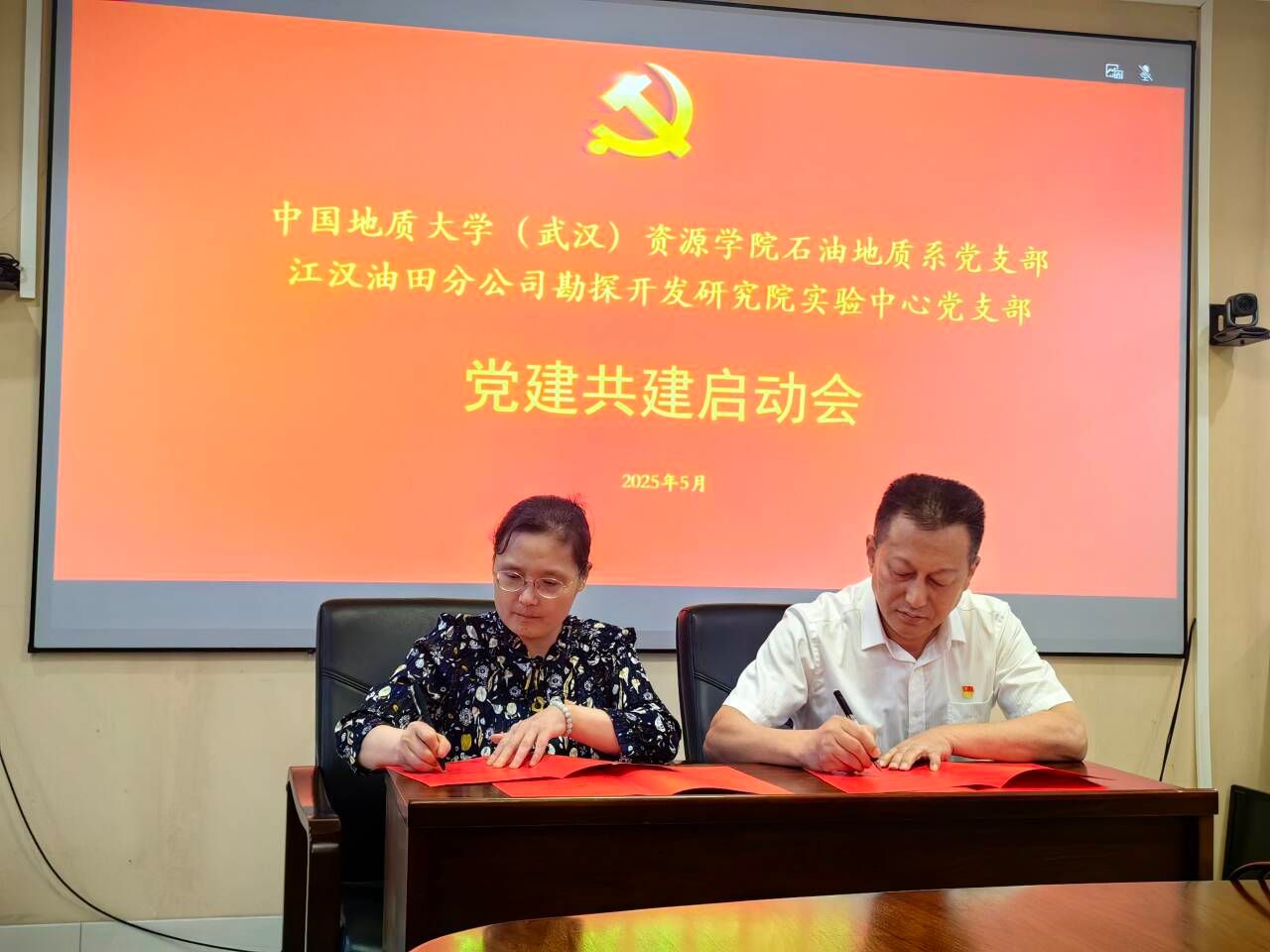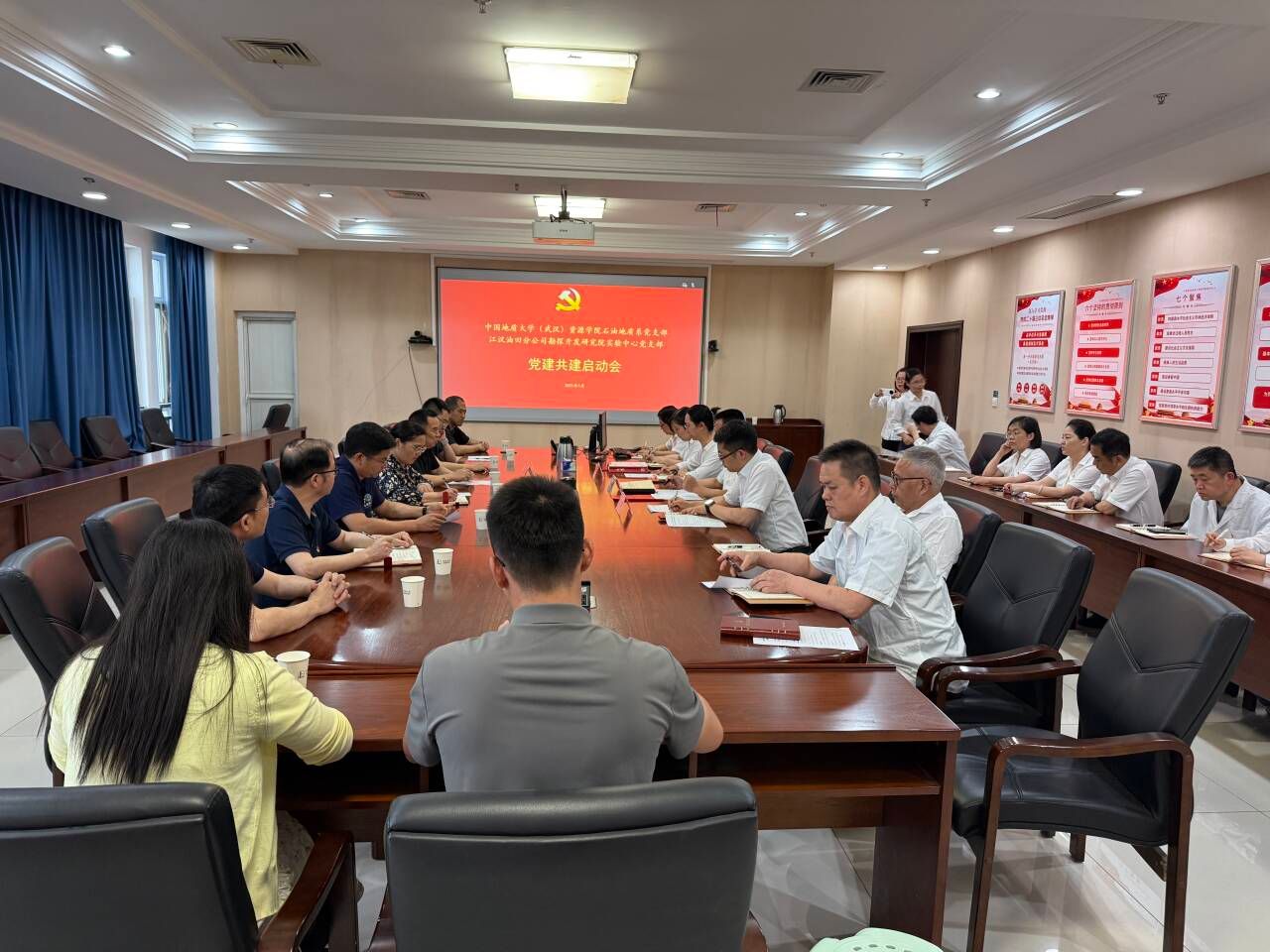 石油地质系党支部与江汉油田勘探开发研究院实验中心党支部开展“支部共建聚合力,技术交流解难题”联合党建活动。会议在江汉油田实验中心举行,双方单位党支部书记、主任及全体党员参加会议。江汉油田勘探开发研究院实验中心主任陈文峰主持会议。