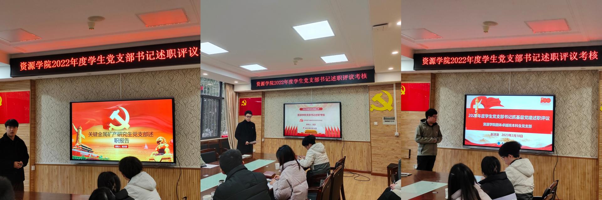 2022年度学生党支部书记述职评议考核暨2023年春季学期学生党建工作布置会召开。学院党委副书记谭文伦,资源信息工程系教师党支部书记梅红波,院团委书记刘明辉,兼职辅导员、研究生德育助理,学生党建工作办公室、学生会、研究生会代表,团员代表以及学生党支部书记、委员参加会议,辅导员霍少孟主持会议。