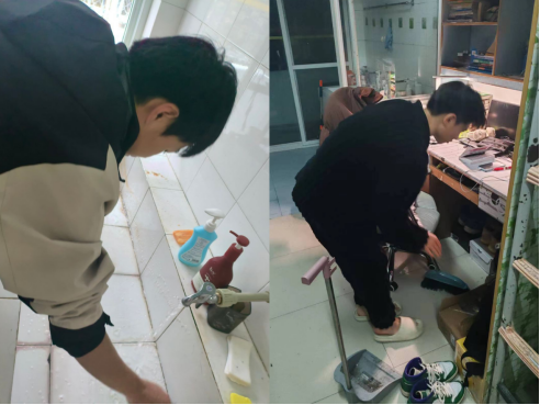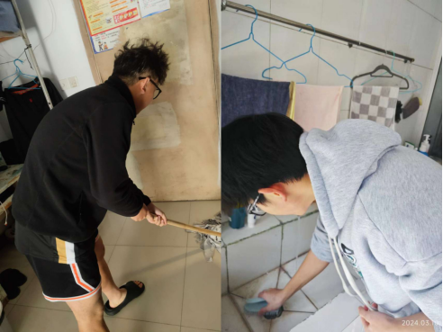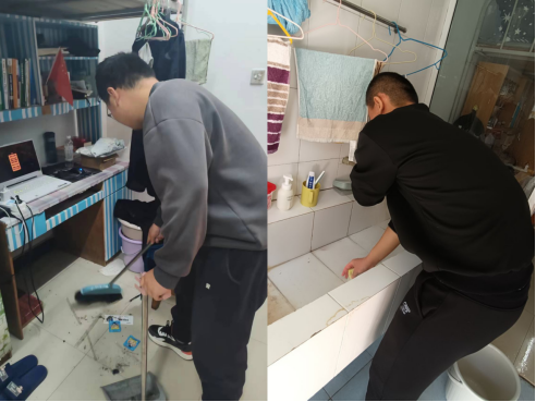 抓住课堂主渠道作用,通过劳动教育课,引导学生积极开展爱国卫生公寓清扫活动,同学们认真清扫走廊、楼道的每一个角落,宿舍环境焕然一新,地面、阳台干净整洁,物品摆放有序,空气清新宜人。