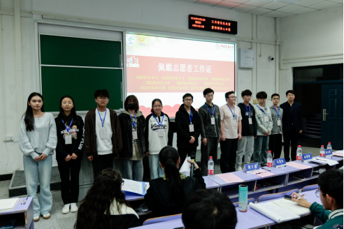,到场老师为各班级志协理事佩戴工作证,全体新注册志愿者集中宣誓。