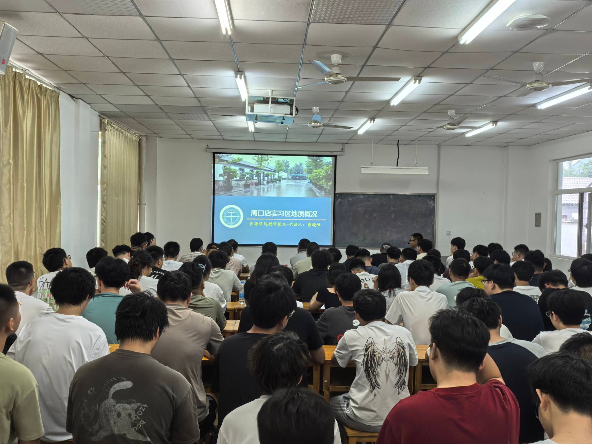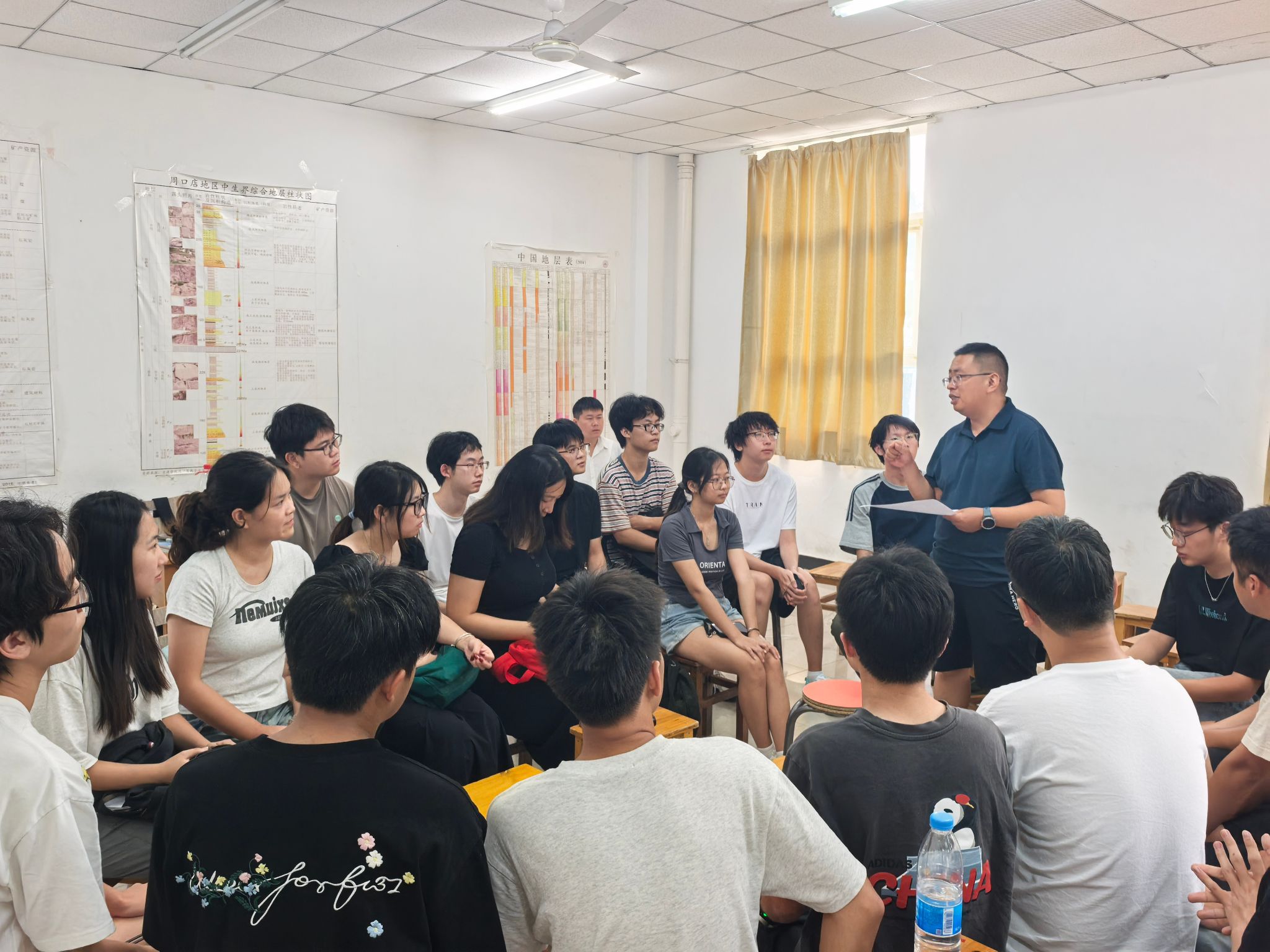 师生进行专题授课。曹晓峰讲解“周口店实习区地质概况”。