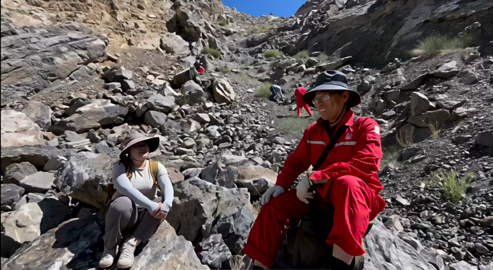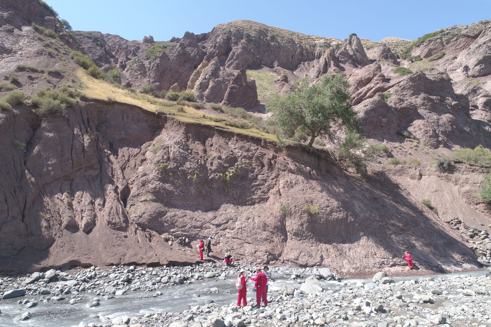 无人机镜头下的考察队成员野外工作