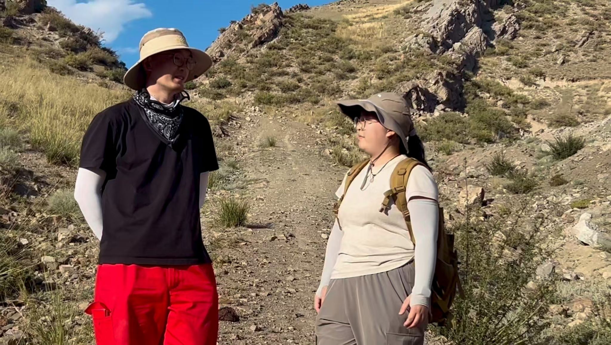 胡慧在野外采访冀天潇
