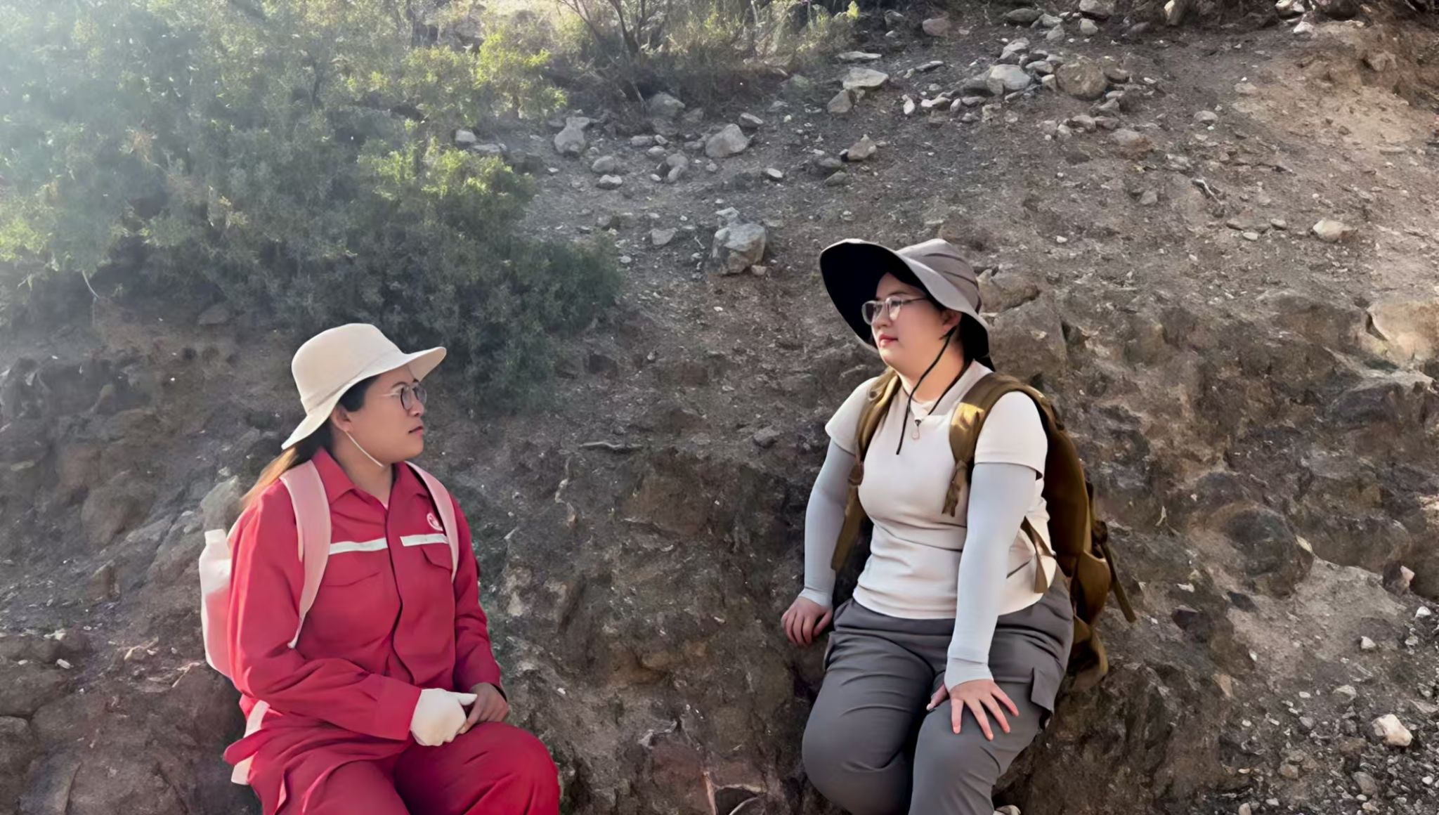 周惠莲与杨香华在野外进行采样工作
