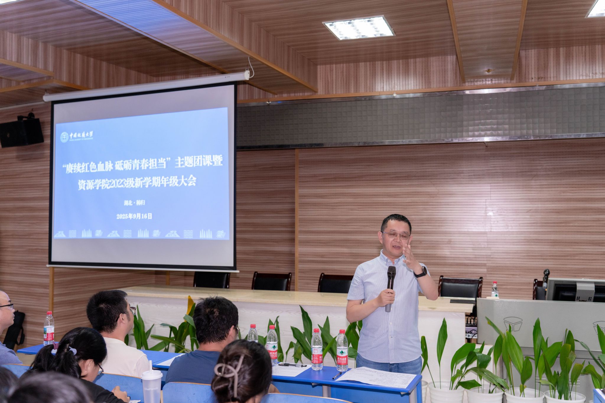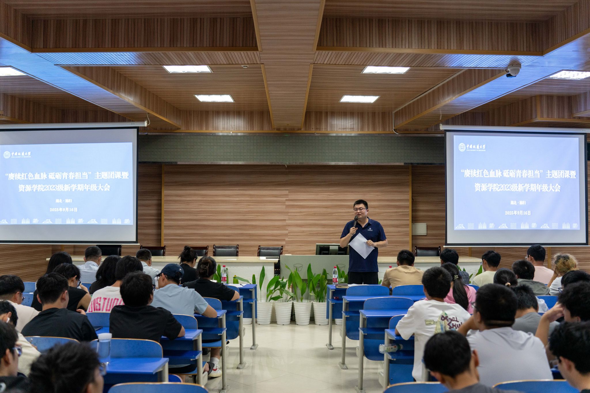大会第一阶段,赵洪武为2023级全体本科生讲授团课。他以“始终坚持党对青年工作的领导”为题,以“青年工作的战略地位”开篇,强调青年是党和国家事业发展的生力军,结合历史与现实,深入分析了当前青年工作面临的新形势、新任务,指出新时代青年要坚定理想信念、站稳政治立场。他重点阐述了习近平总书记对青年工作的重要论述,并围绕“讲政治、懂业务、强复命、敢担当、能吃苦、遵法纪、善团结”青年干部必备的七种能力,勉励同学们“大地是最好的课堂,实践是最厚的土壤”,希望同学们把秭归的群山当作青春的讲台,用脚步丈量祖国山河,以实践锤炼专业本领,将论文写在祖国山川大地上,把青春奋斗融入国家资源能源安全保障的伟大事业中,用实际行动诠释“请党放心,强国有我”的铮铮誓言,努力成长为堪当民族复兴重任的新时代地质人。