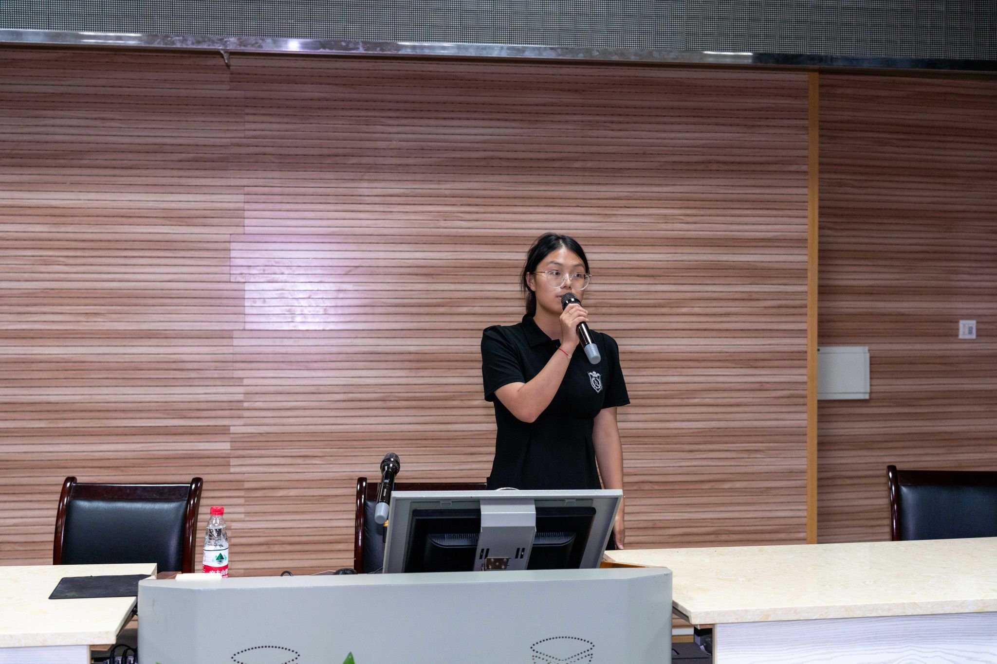 年级工作组学习专员程爽作学情分析。她系统总结了2023级前四个学期的学业情况,通过数据对比指出班级间发展不均衡、部分课程挂科率较高等问题,并提出优化学风、加强时间管理、重视专业课程学习等具体建议。