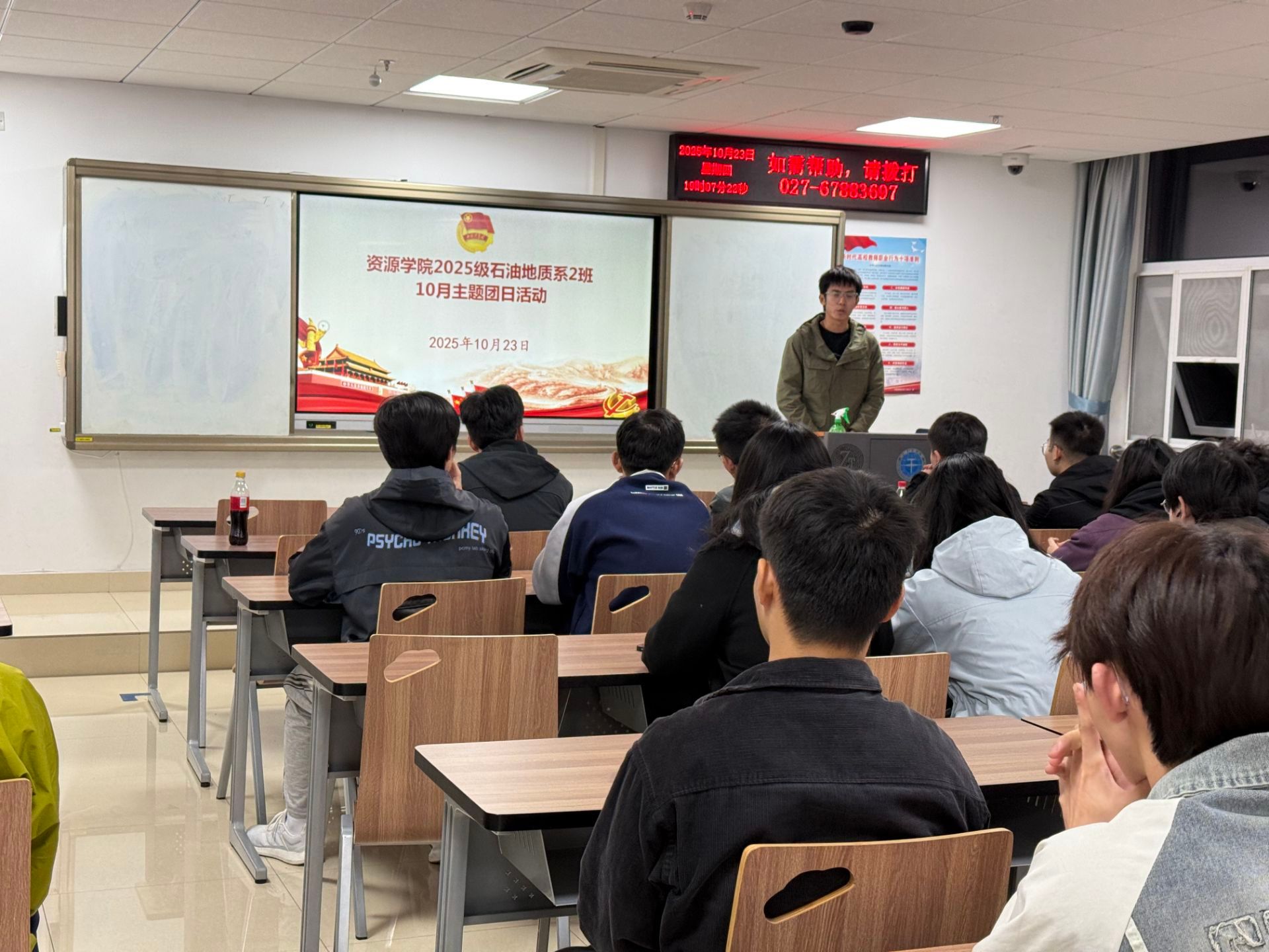 2024级紫金地矿班团支部举行“庆盛世华诞,展青春担当”十月团日活动。辅导员刘睿参加。在团日上,通过红色比赛、党史知识竞赛对抗赛、寄语时光胶囊等环节,丰富了支部成员的团日体验。