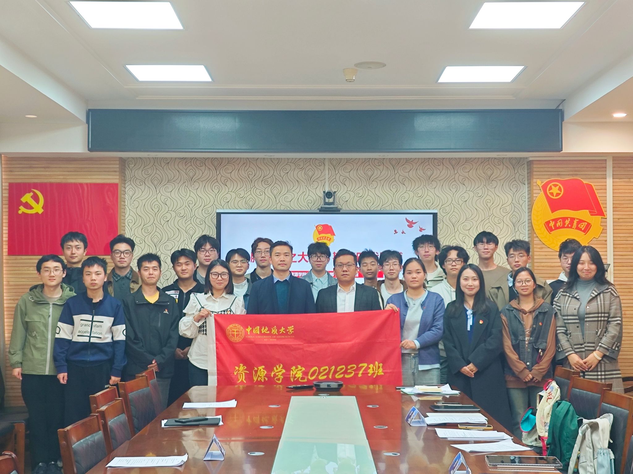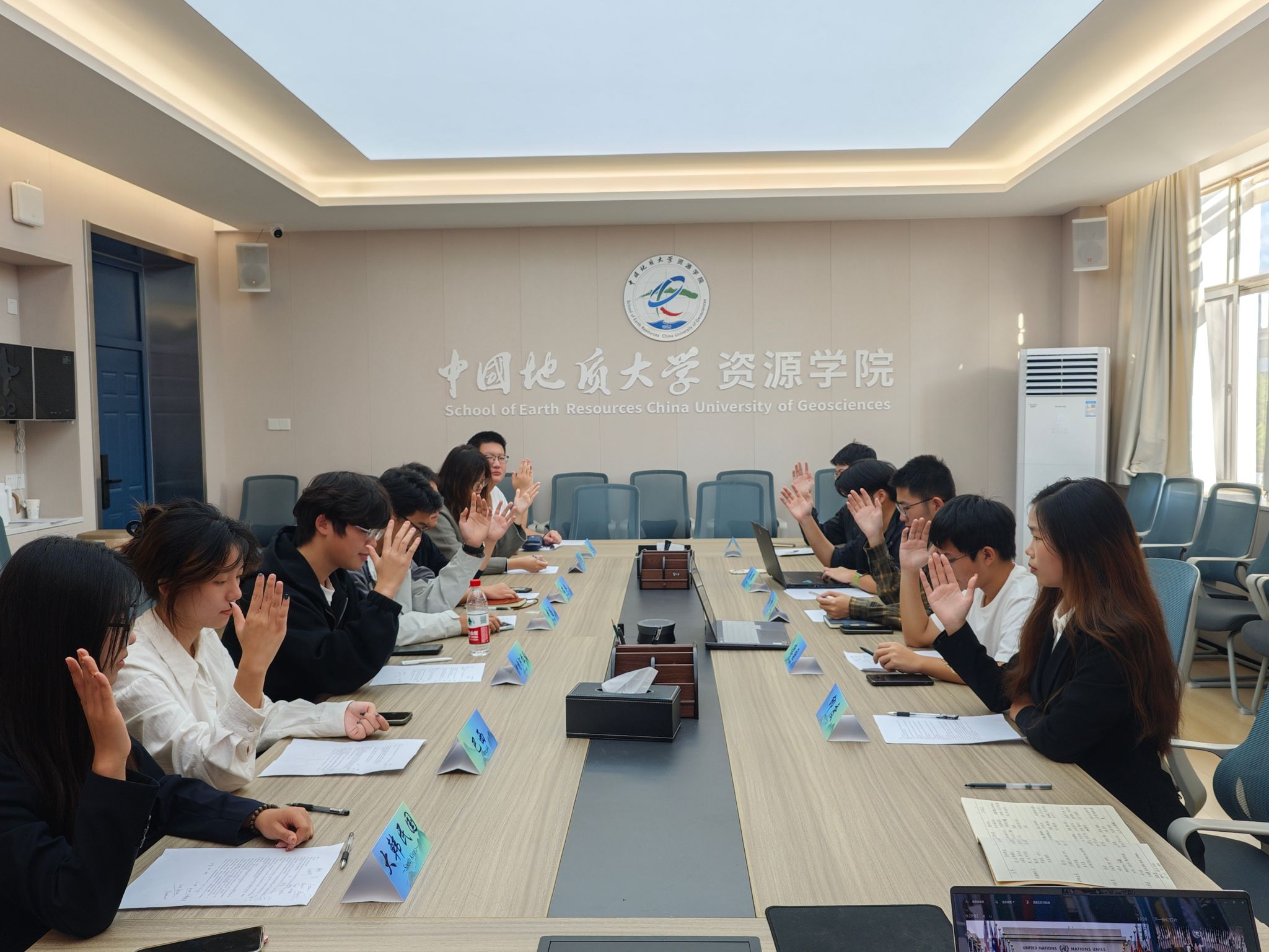 2023级“紫金地矿班”团支部以“胸怀国之大者,勘查时代脉搏”主题团日活动。2023级“紫金地矿班”班主任、副院长李占轲、资源系刘文浩副教授参加团日活动。团支部书记齐乐以“中国与联合国:全球治理中的资源担当”为题开展专题学习,并专项策划了以“保障关键矿产资源安全,推动全球绿色能源转型”为主题的模拟联合国大会。”