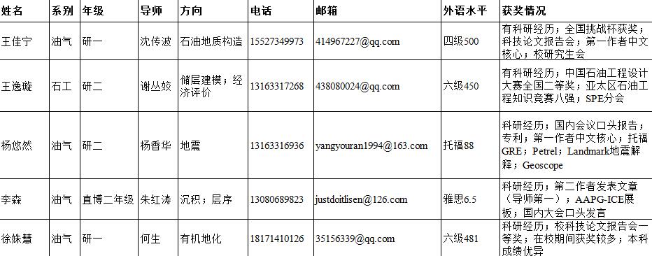 11月15日--20日,秉着公开、公平、公正的原则,兼顾2017年AAPG-IBA大赛的学科方向,经过前期个人报名和专家评审两个阶段,现选拔出5位同学具备本次大赛参赛资格,参赛队员具体信息公示如下: