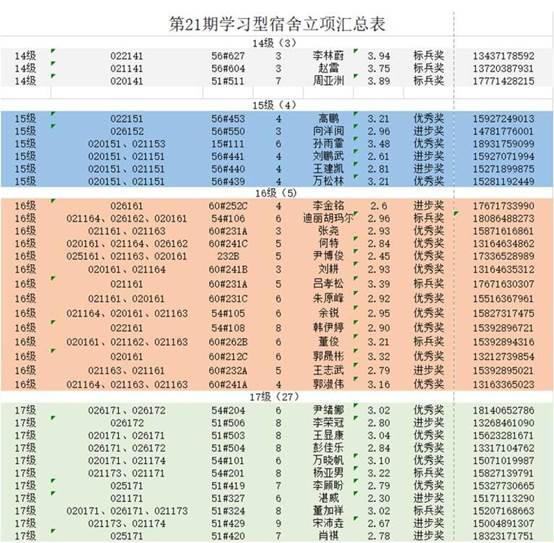 学习型宿舍建设是学院的重点工作,它本着以学生为中心的原则,以培养学生的自我教育、自我管理为目标,以宿舍文化建设为核心,致力于打造健康向上和谐多样的文化氛围,从而形成学院的良好学风。在第21期学习型寝室活动中,以下宿舍立项成功,特此公示。希望这些宿舍在接下来的学习生活中,不忘初心,积极上进,争取结题成功。
