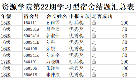 希望结题成功的宿舍继续保持,争取再创辉煌。也希望其他宿舍向这些宿舍学习,争取在下一期活动中结题成功。