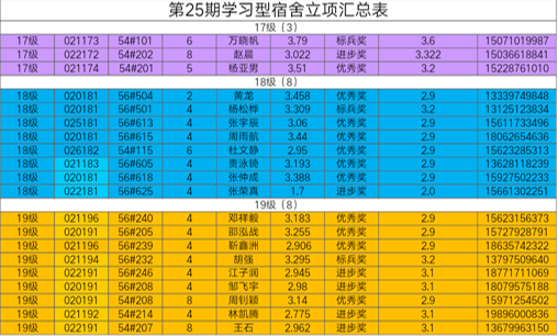 2.优秀奖:宿舍成员无挂科,大三大四年级平均绩点≥3.2,大一大二年级平均绩点≥2.9,人均奖励50元;