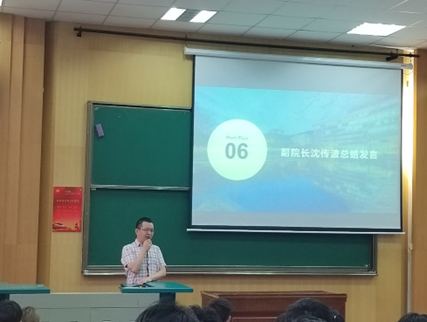 副院长沈传波总结发言。他围绕2022年暑期实习工作任务,提出三点要求。一是要高度重视实习实践。实习实践是人才培养的重要环节,各位同学要高度重视,在实习中感悟真知,在实践中锤炼本领。二是始终把安全放在第一位。各位老师和同学要严格遵守疫情防控要求,注意野外实习安全,安全圆满完成实习任务。三是要统一行动,服从管理。野外实习期间需要严格听从带队老师要求,统一进行实习相关活动,确保实习正常进行。