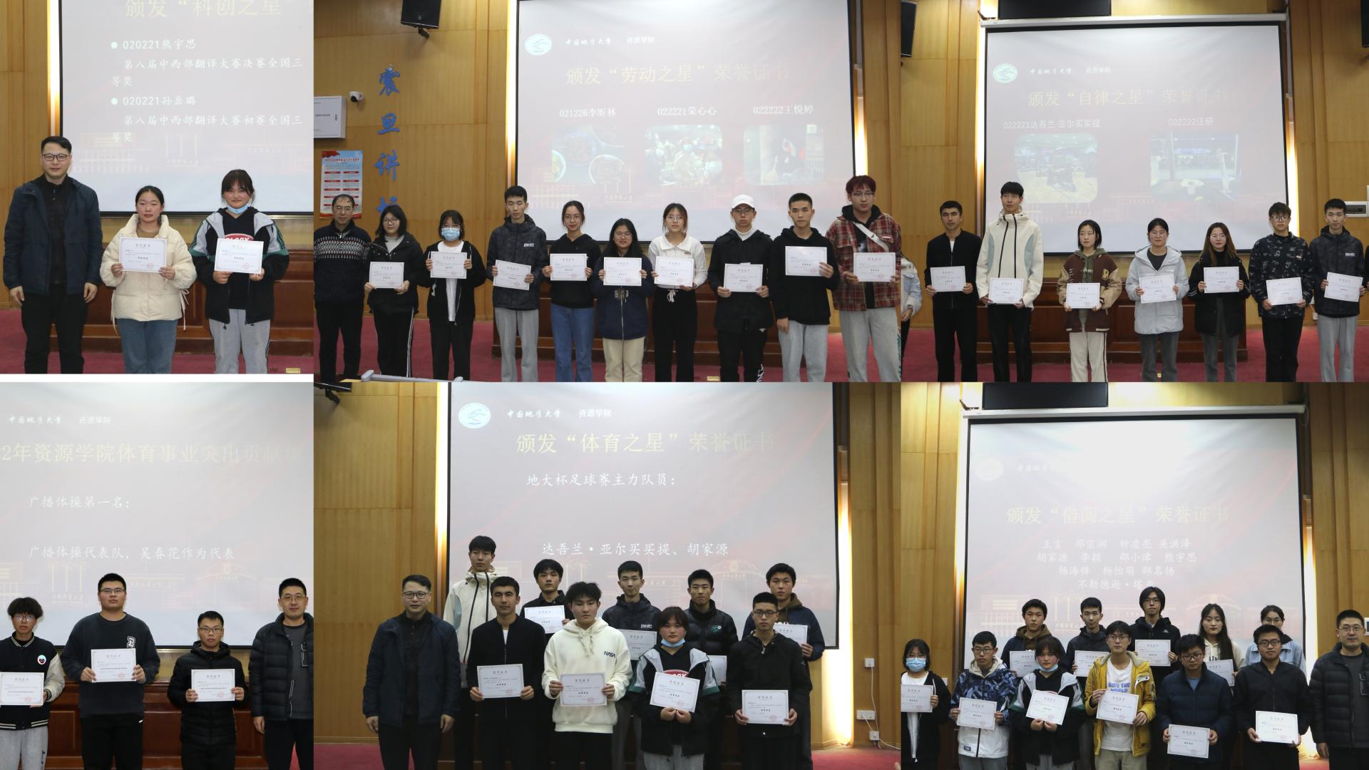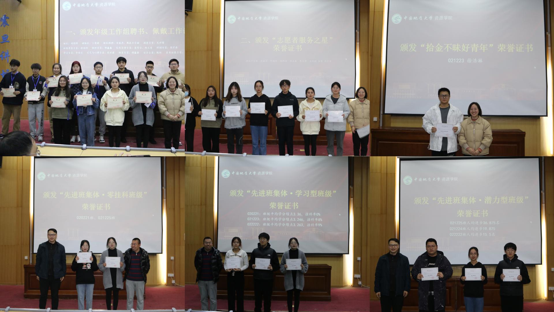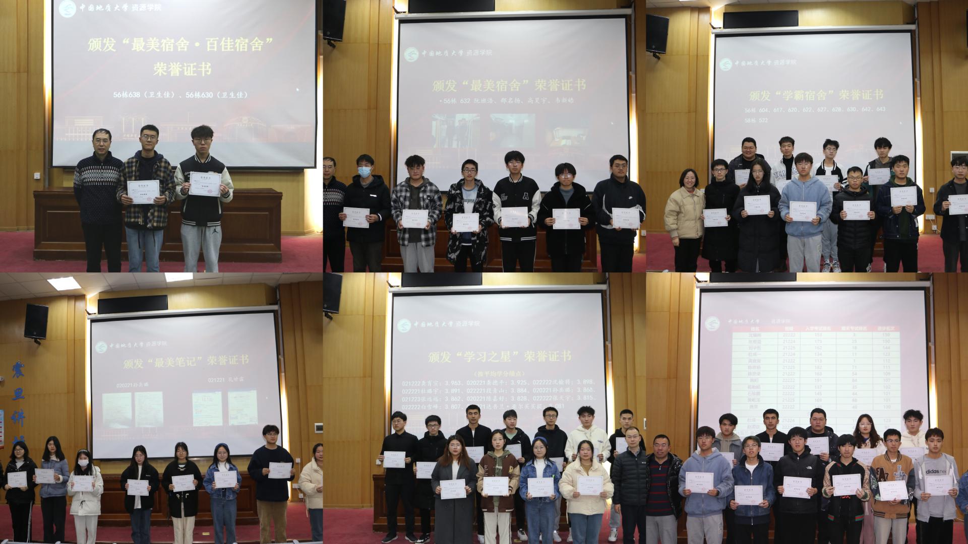 辅导员和全体班主任为“先进班集体”“最美宿舍”“学霸宿舍”“拾金不昧好青年”“志愿服务之星”“最美笔记”“学习之星”“单科优秀奖”“进步之星”“科创之星”“劳动之星”“体育之星”“文艺之星”“自律之星”“借阅之星”“跑馆达人”“优秀班团干部”等获奖集体和获奖个人颁发荣誉证书。
