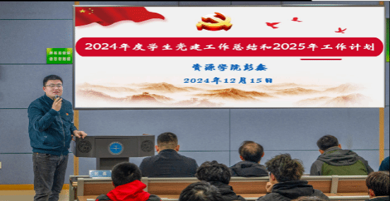 彭鑫作学生党建工作报告。他介绍了今年学院党建“双创”工作的新进展,总结了学生党建工作2024年度工作和成效,并就2025年部分重点工作做了说明。他指出,学院将继续推动学生样板党支部的培育,鼓励各支部结合专业优势和特色,积极参与“红星”学生样板党支部品牌创建,激发党支部战斗堡垒作用和党员先锋模范作用的发挥,用以笃行实干点燃专业报国的红色引擎。
