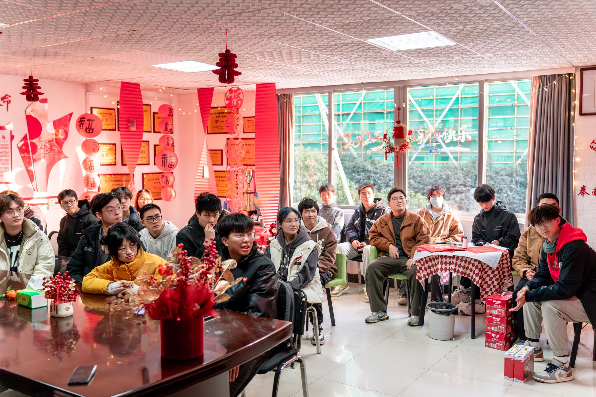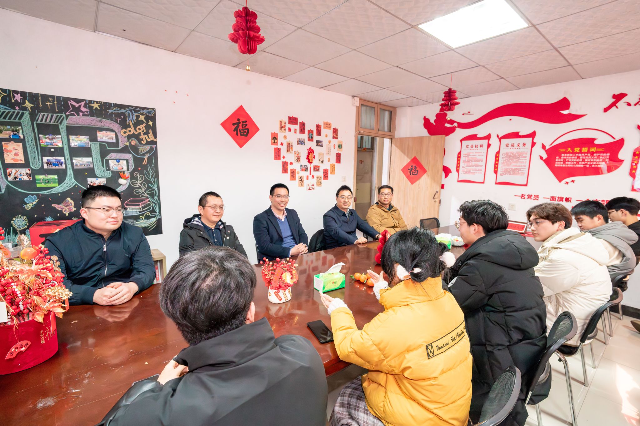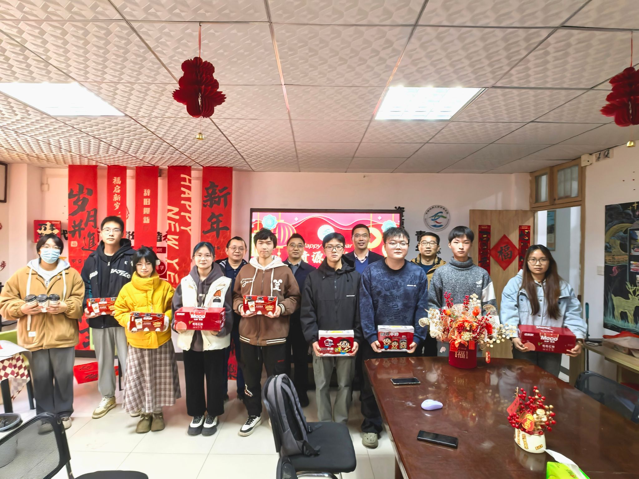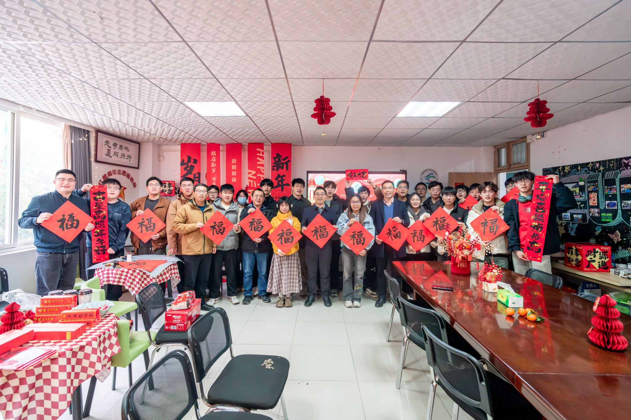 2025“百福迎新”新年师生座谈交流会在56栋资源青年之家举行。学院党委书记汪再奇、院长严德天、副院长沈传波、党委副书记谭文伦,学工组辅导员参加活动,与同学们欢聚一堂,共度佳节、共话成长。
