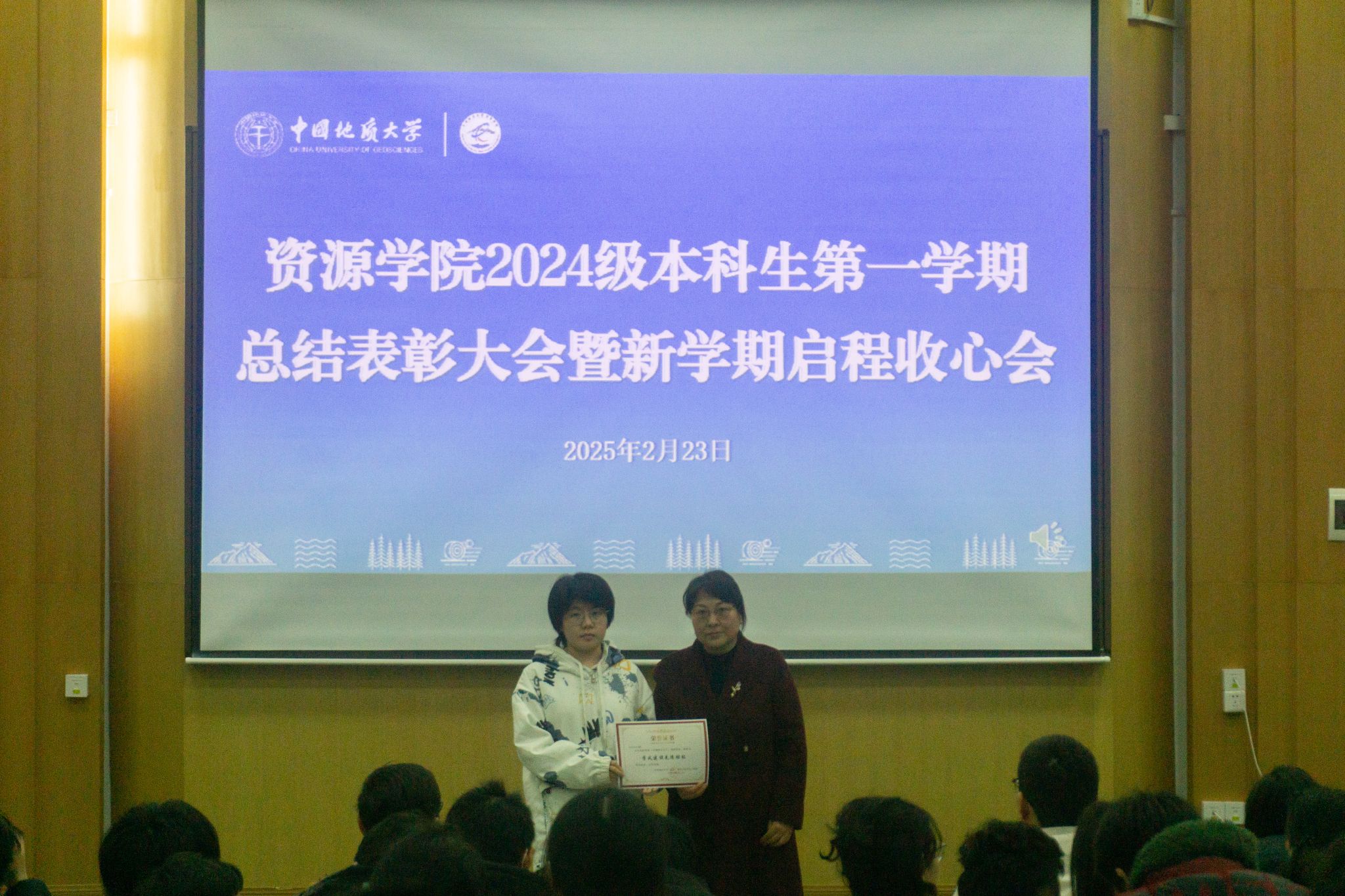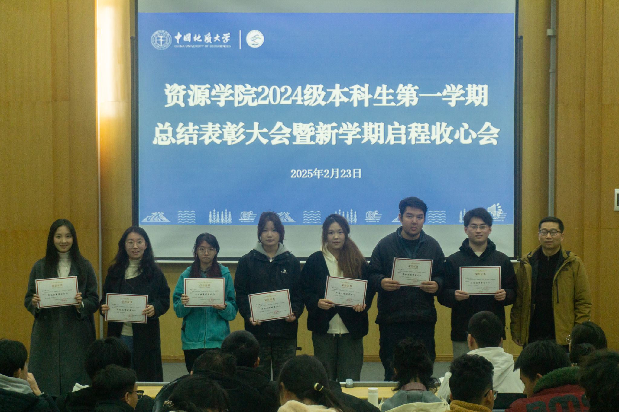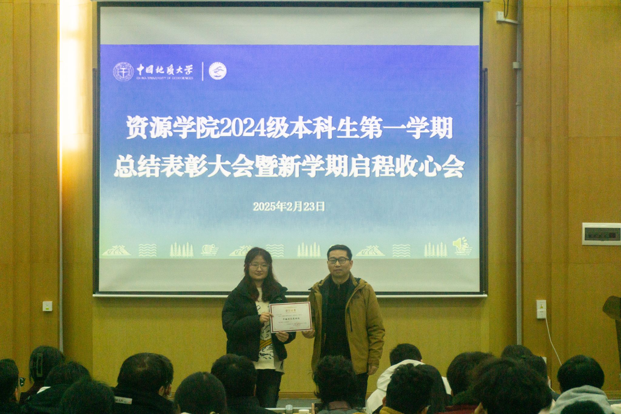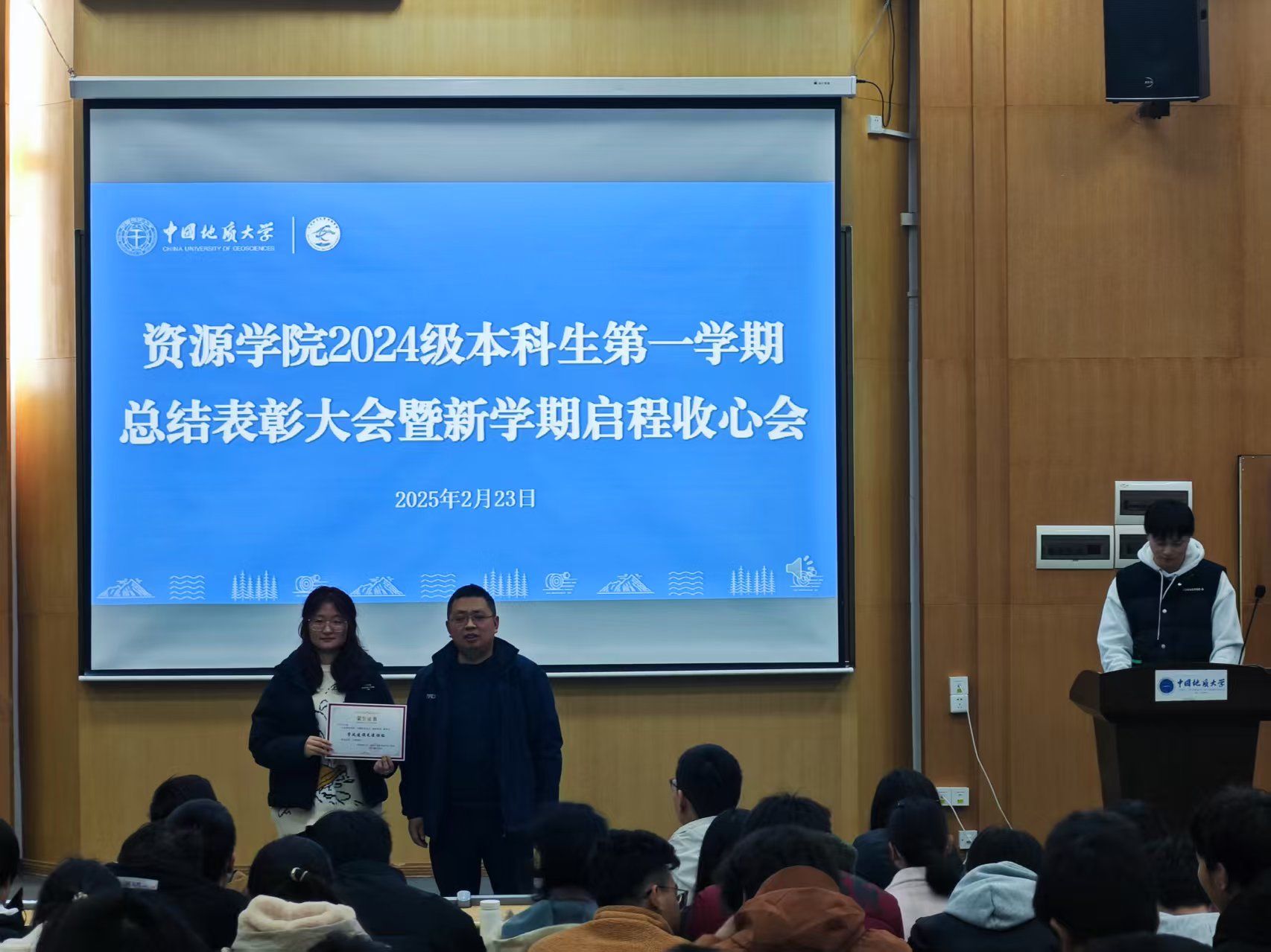 在南望山校区西区教三楼109教室召开2024级本科生第一学期总结表彰大会。学校安全保卫部副部长彭冠军,学院党委副书记谭文伦,安全保卫部法律援助办主任魏景明,班主任代表付乐兵、周红、陈志军,专兼职辅导员,李四光计划成员代表及2024级全体本科生参与会议。会议由2024级本科生辅导员刘睿主持。