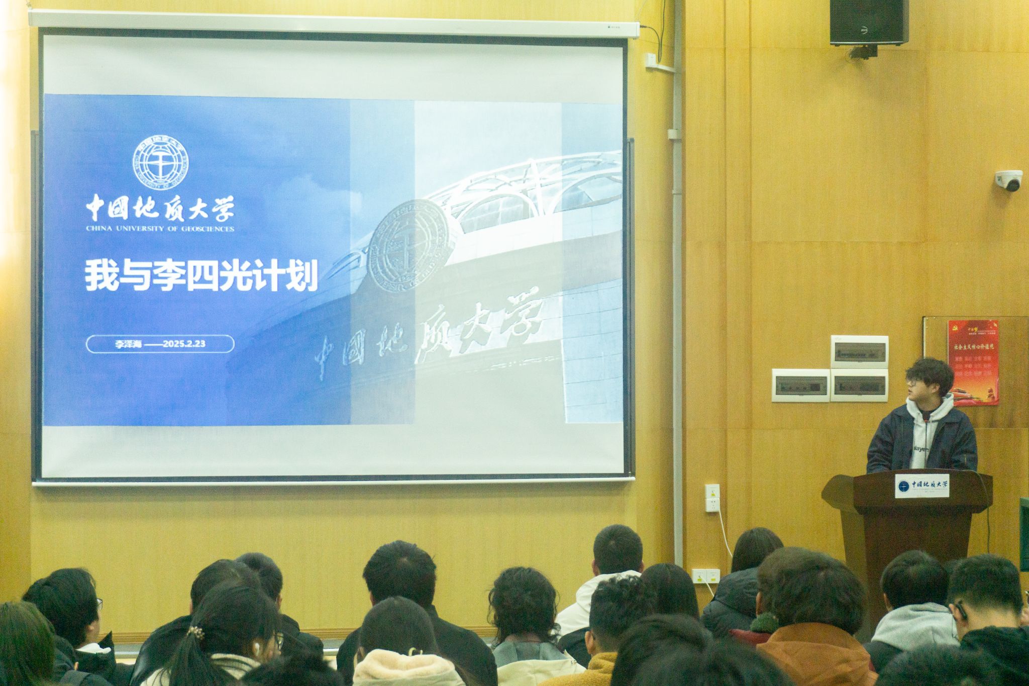2023级本科生李泽海做《我与李四光计划》主题分享。他从自身成长、李四光计划介绍、学业建议三个方面全面介绍了李四光计划,并根据大一下学期的学情特点分享了学习心得与感悟。