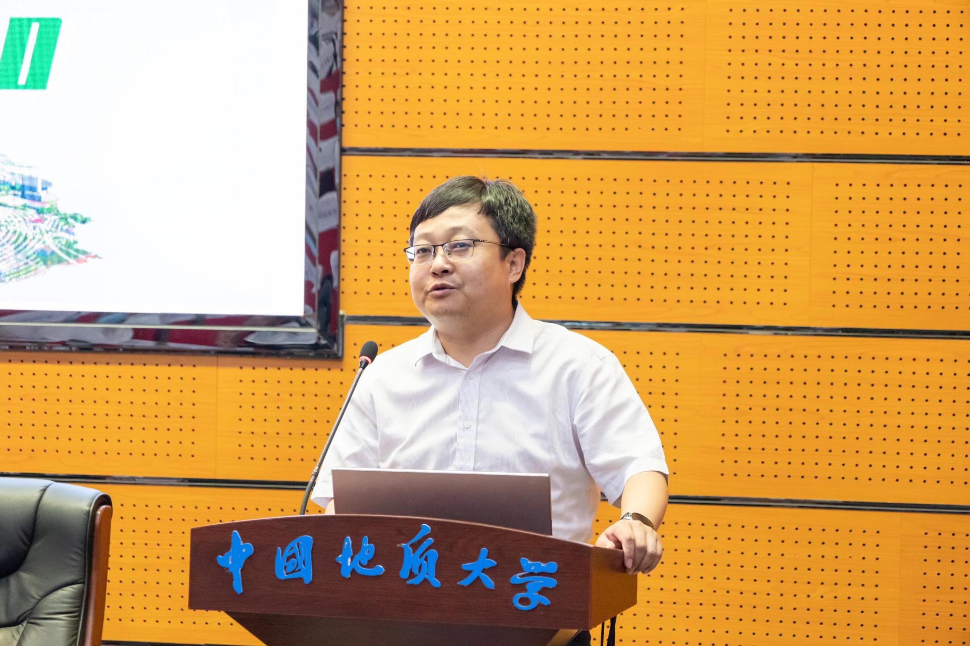 导师代表、石油地质系梅廉夫教授发言。他讲述了现代大地构造学说的发展历程,即从大陆漂移学说理论的提出到被攻击、发现海底扩张新证据、确立板块构造学说地位的艰难过程;亲切勉励同学们在科学研究的道路上,既要仰望星空,更要知行合一,专注、自律、苦练,努力为科学创新贡献自己的力量。