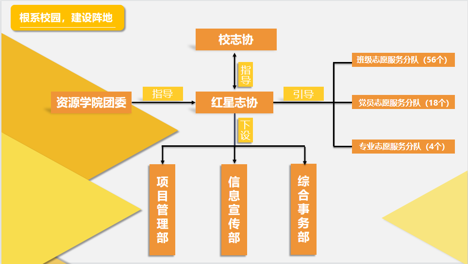 现有学生骨干管理者31人,注册志愿者1500余人,以18个学生党支部、56个学生团支部为单位设置志愿服务分队,与30余个专业社团保持长期合作。