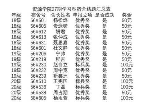 希望结题成功的宿舍继续保持,争取再创辉煌!也希望其他宿舍向这些宿舍学习,争取在下一期活动中结题成功!