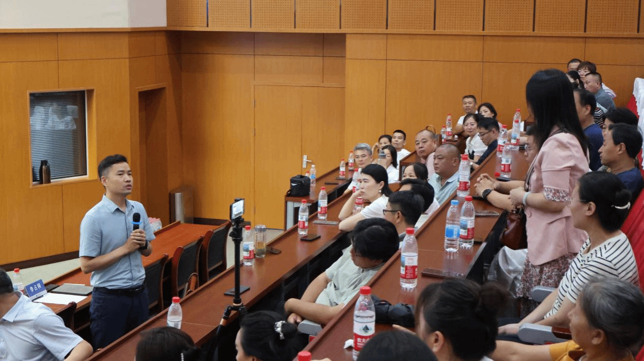 在交流发言环节,家长们提出关于学生安全保障、专业设置、就业方向、保研升学、实习就业等问题,学院领导针对家长关心问题进行细致回复。