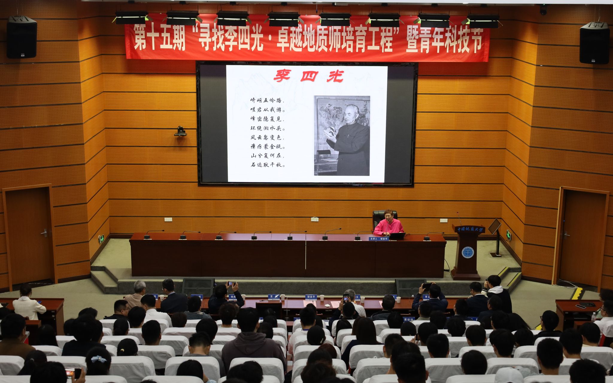 开幕式后,举行了“李四光精神”主题报告会,由中国科学家精神宣讲团成员、李四光纪念馆高级顾问、李四光先生外孙女邹宗平女士主讲,报告主题为《石迹耿千秋—李四光的故事》。