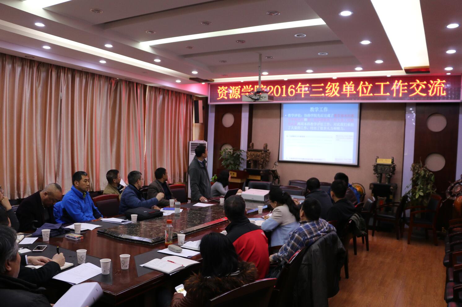 在主楼328学术报告厅开展三级单位2016年工作交流活动。学院班子成员、三级单位负责人、教授代表参加了交流活动,并担任评委。学院党委书记郭秀蓉主持了交流活动。