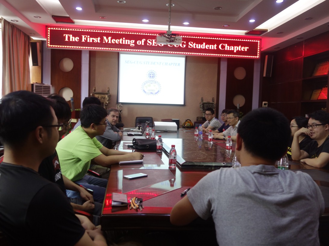 首先,Lentz教授对SEG中国地质大学学生分会的成立表示祝贺,他向全体成员详细地介绍了SEG学生分会设立的初衷、运行机制以及学生分会执行委员会的职责,强调我们要抓住机会,广泛吸纳成员,定期开展多种形式的讲座、研讨会和野外考察。之后,Lentz教授根据自己的实际经历,以“安全”为主题给大家做了一场别开生面的讲座,希望学生分会在开展野外考察时要装备齐全,牢记安全。