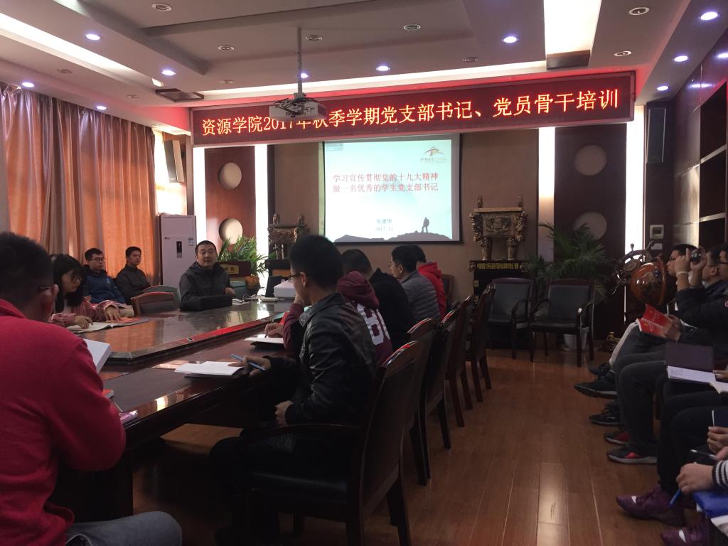 开展了2017年秋季学期党支部书记培训班第二讲。院党委副书记张建华作主题为“学习宣传贯彻党的十九大精神,做一名优秀的学生党支部书记”的报告。本科和研究生共28名党支部书记参加了此次培训。会议由党建办公室主任章帆主持。