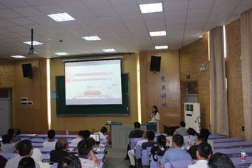 在教三楼110召开全院大会,院党政领导及百余名教职工出席了大会。院党委书记郭秀蓉主持会议。