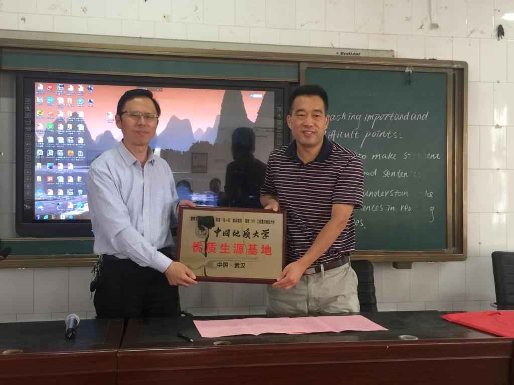 、办学特色、招生专业及专业特色后,同时就我校自主招生工作进展、河南省开封高级中学(新校区)生源情况等内容进行了详细交流。随后,双方签署了《联合共建优质生源基地协议书》,朱红涛代表学校向该授予优质生源基地铜牌。
