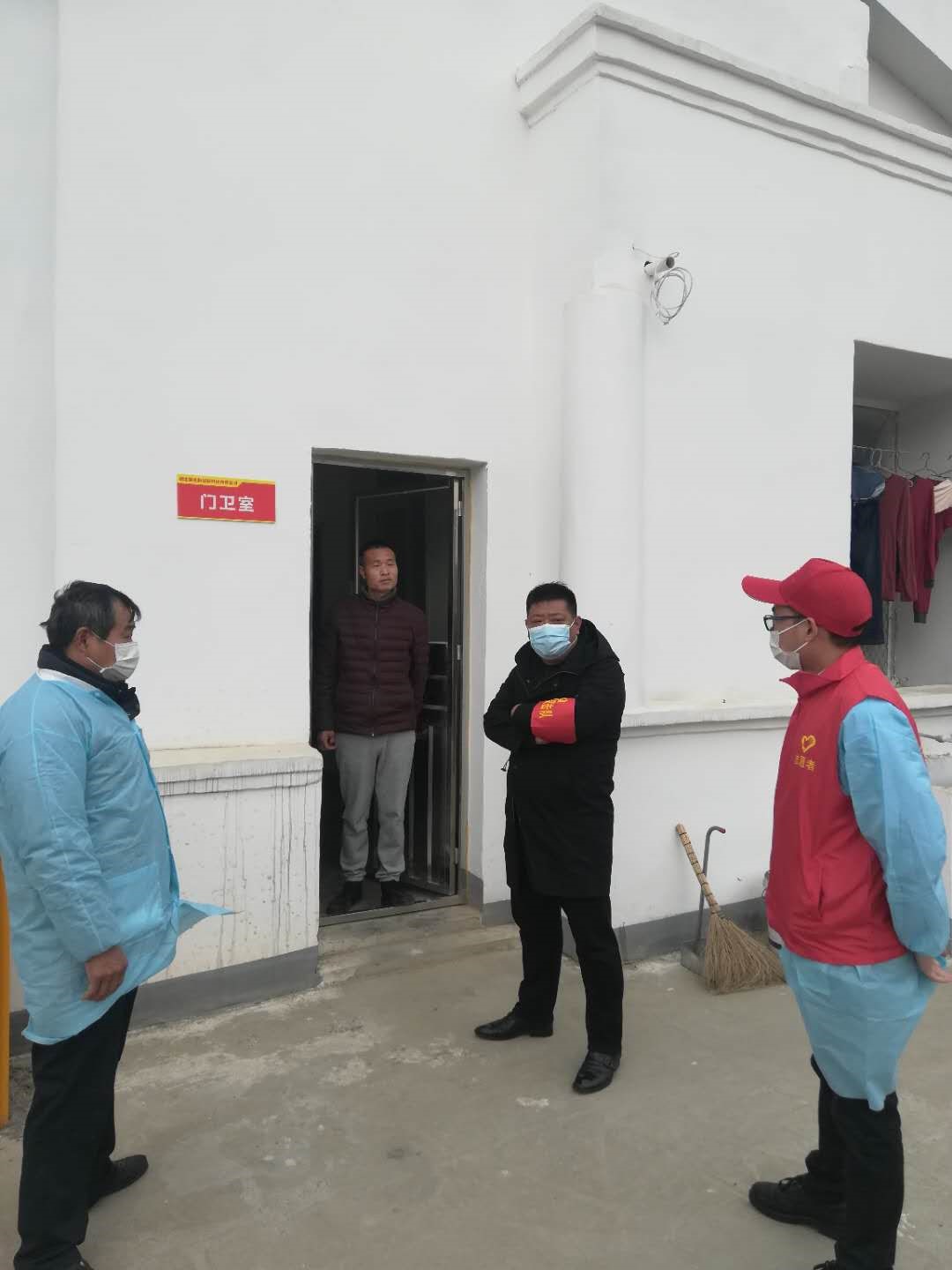 吴正彬(右一)和社区书记(右二)巡查当地企业复工情况