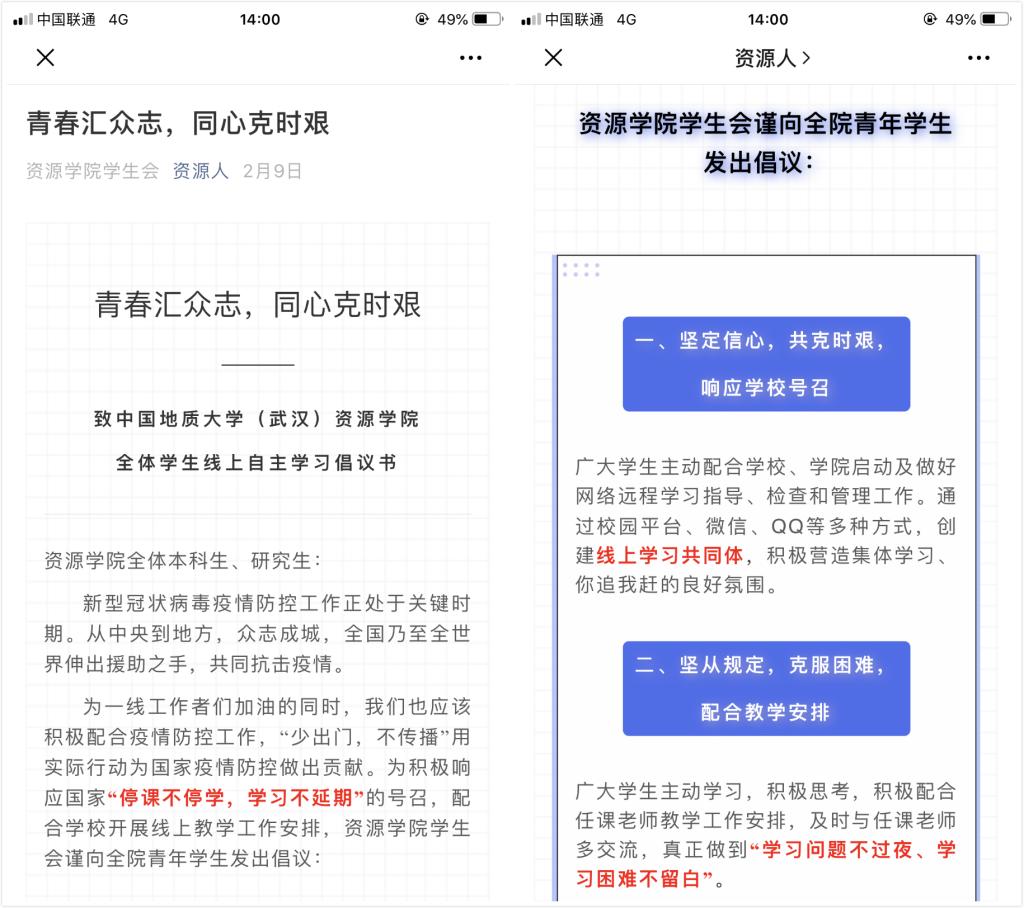 向全体学生发出《青春汇众志,同心克时艰——线上自主学习的倡议书》