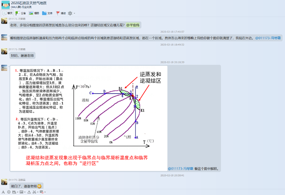 石油地质系平宏伟老师,作为石油地质教学组的青年骨干,承担兄弟学院《石油及天然气地质学D》的教学工作。在尝试超星平台建课不成功的情况下,最终采用腾讯会议进行在线视频讲课。讲课之前把PPT教案发到QQ群中让学生提前预习,每次授课90分钟,并穿插与学生间的现场互动,在课后将每节课重点和难点总结发给学生进行复习,并随时利用QQ群对学生不懂的进行答疑。网络教学整体上取得了较好效果。