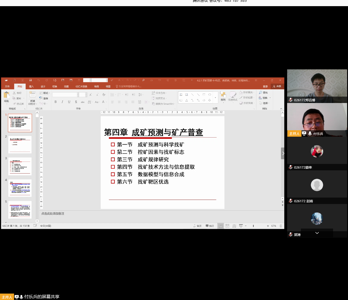 本学期4月份,《矿产勘查理论与方法》还将有李四光学院、地学院、海洋学院6个班的课程即将开课,即将开课的魏启荣、李艳军老师等老师也已经做好了课前的准备工作,将严格贯彻学校“停学不停课”的要求,有信心顺利完成疫情下的课程教学任务。同时,还将在学期末就本次课程的网络授课进行总结,查找不足和存在的问题,为建设丰富课程网络教学资源和提高网络直播教学质量迈出更为坚实的一步。
