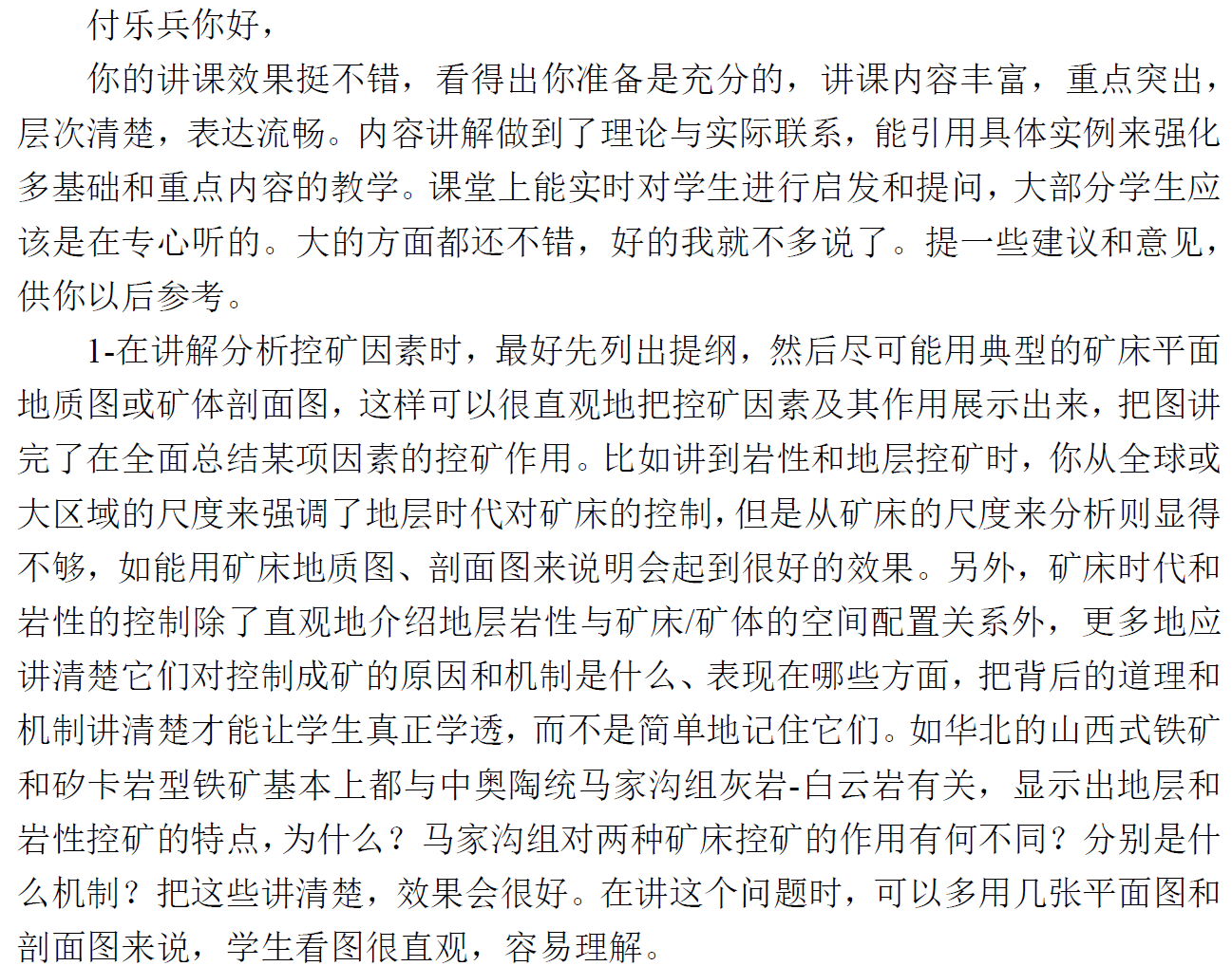 李院长听课后给任课教师反馈意见截图