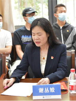 团委书记朱荆萨致辞。她讲到,希望采六青年、资源学子心手相连,永久奋斗、矢志创新,闯“无人区”、破“天花板”、当“探路者”,成为习近平总书记殷切期盼、祖国和人民殷切期盼的先锋。