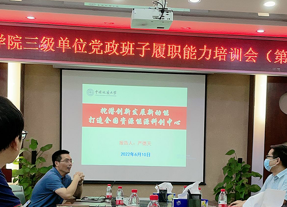 高复阳作总结发言。他指出,本期培训内容详实,剖析深刻,业务性和针对性都很强,都是重点工作,各单位要带着本单位的实际问题来交流学习,形成具体的工作思路和举措,进一步提高思想认识、增强工作效力。他谈到,当前资源能源学科面临转型升级和创新发展,在学科建设上要突出强调科技创新质量的提升,聚焦“双碳目标”“一带一路”和“长江经济带”等国家战略和重大部署,坚持内涵发展,提高服务国家重大战略和行业重大需求的能力;在师资队伍建设方面,要坚持“四有教师”标准,落实十四五“教师能力提升计划”,注重学科新方向的人才引进,加大高水平团队培育力度;在人才培养方面,紧紧围绕立德树人根本任务,坚持“以本为本”,加强新专业的建设,完善人才培养方案,进一步贯彻落实本科生导师制,持续优化一流本科教育体系,推进中外合作办学,建设一流本科和高质量人才培养体系;在研究生培养方面,要大力推进研究生培养国际化和“一带一路”留学生培养项目;在校企合作方面,要加强与行业单位在学术交流和产学研合作,谋求大项目大成果的突破,为政府决策、产业转型升级提供支撑,提升社会服务能力;在科研平台、实验室建设方面,持续谋划和推进高层次科研平台建设,统筹教学、科研实验室建设规划,推进实验室资源整合,成立学院实验教学中心。他强调,各三级单位要加强执行力建设,齐心协力,勇于担当,迎难而上,确保高质量完成各项工作任务,推动学院事业科学、持续、健康发展。