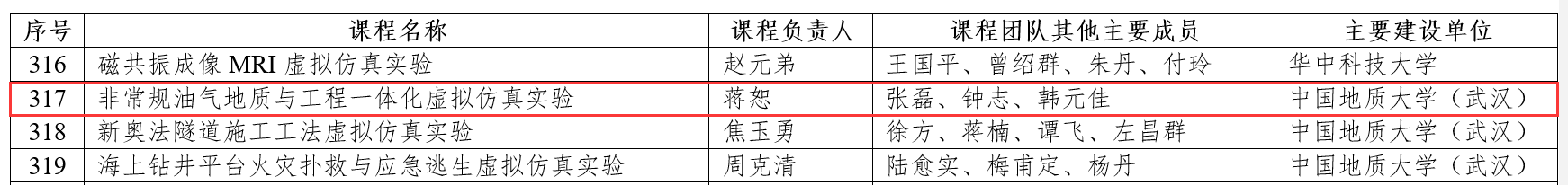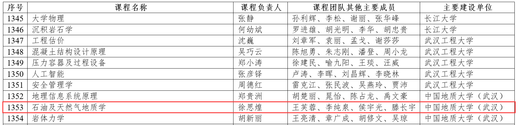 近日,教育部公布第二批国家级一流本科课程认定结果,我院徐思煌教授牵头申报的“石油及天然气地质学”课程获批线下一流课程,蒋恕教授牵头申报的“非常规油气地质与工程一体化虚拟仿真实验”获批虚拟仿真实验教学一流课程。